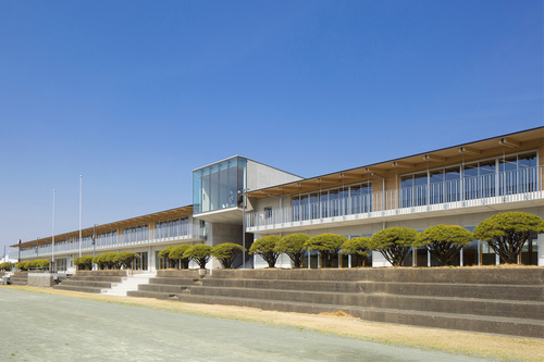 50年前に植えた学校林を利用して建てた、現代の木造3階建て校舎であり、その意義は大きい