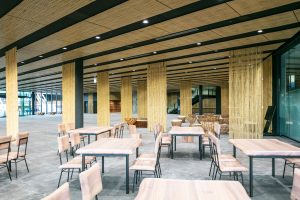 大分らしさにあふれた施設を目指し、多目的競技場や武道場の屋根の主要な構造部材や壁の内装に県産無垢スギ材を使用していることが高く評価されました。